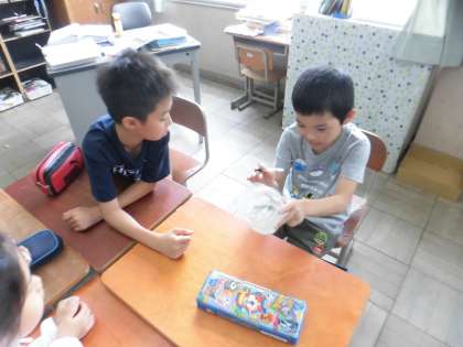 とうとう3組に「アゲハチョウ」の卵と幼虫がやってきました。子どもたちは興味津々に観察していました。これからどんどん成長していく様子を見ていきます。