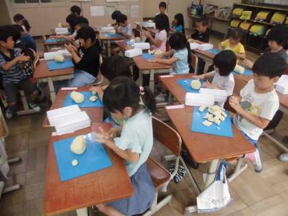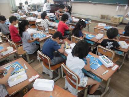 図工の学習で粘土のひもを作って,いろいろな形を作りました。