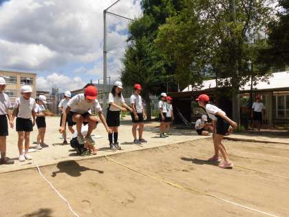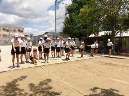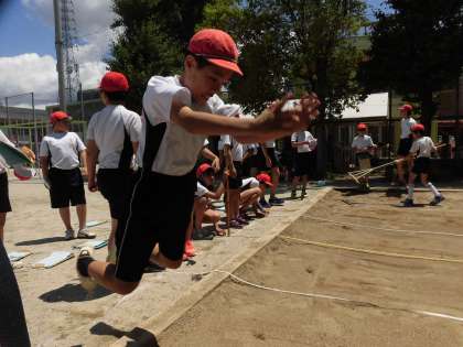 運動場では,「立ち幅跳び」。