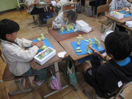 図工の学習で2年生で思い出に残っていることを粘土で表しました。