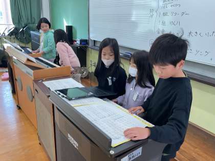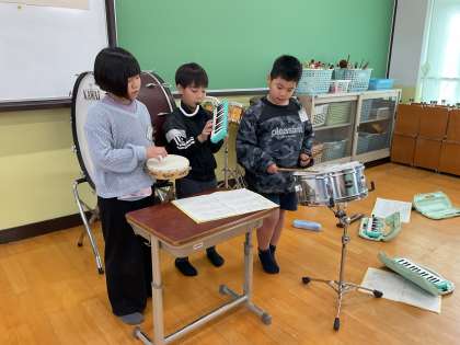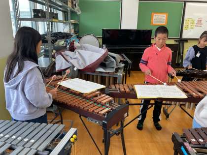 ミュージックフェスティバルに向けて、合奏の練習に頑張って取り組んでいます。木琴やバスオルガン、小太鼓などの楽器も、どんな音・リズムなのか試してみました。まだまだ練習は始まったばかりです。ミュージックフェスティバルへの取り組みを通して、みんなで音を合わせる楽しさを感じられたら嬉しいです。