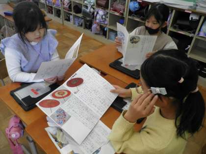 国語の「未来につなぐ工芸品」では、工芸品の魅力を見つけてきました。学習のまとめとして、自分たちも工芸品を後世に伝える「職人」となろう!と、各自調べ学習をした工芸品をリーフレットにまとめました。