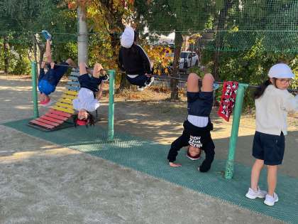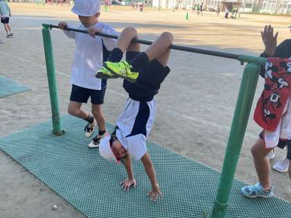 体育で鉄棒の学習に取り組んでいます。自分の目標を持って、いろいろな技に挑戦しています。