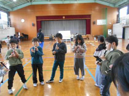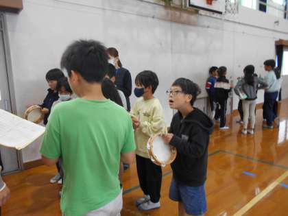 初めての体育館での練習。楽器・歌を教室でも練習して、本番に向けて頑張っています。