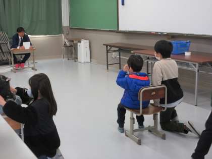 それぞれカードを丁寧に小さな子ども達の目線でゆっくりと説明したり、「トイレに行きたい?」と優しく問いかけたりとても頼もしい上級生として大活躍の5年生でした。