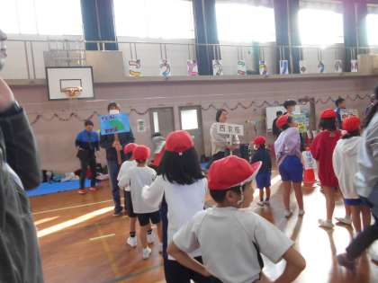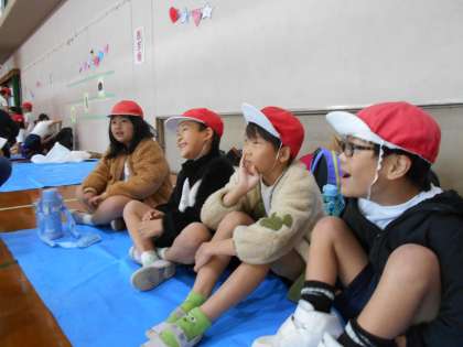 秋晴れの中、安井小学校に合同交流会に行きました。たくさんの安井小学校の子ども達に拍手や「こんにちは」の笑顔で迎えてもらいました。安井小学校の子ども達と、右南支部の育成学級の子ども達と、ダンス・バルーン・貨物列車等楽しみました。作ってもらったお弁当は最高においしかったようです。朝早くから準備やお弁当作り等お世話になり有難うございました。