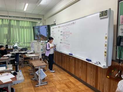 算数科は『比例と反比例』に入っています。表の変わり方に注目して、その変わり方の違いを説明しました。xが2倍、3倍・・・になると、yも2倍、3倍・・・になる。xが1/2倍されると、yも1/2倍される。yをxで割ると決まった数が出る。つまり、yはxに比例していると言えます。残りの表の特徴もしっかりと説明できるように考えていきましょう!
