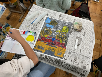 刷りあがった作品の裏から色付けをしてきれいに仕上がりました。