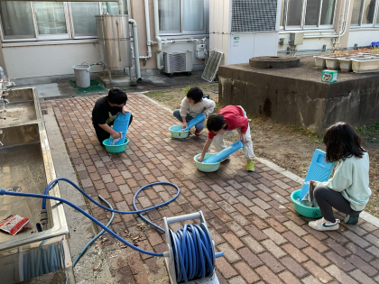 中間休みには、興味を持った人で洗濯板を使って雑巾を洗いました。「冷たい。」や「雑巾だけで、こんなに時間かかるのに家族の洗濯は大変だな」と言う感想を話してくれました。