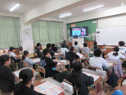 冬休み前に5年生の携帯教室がありました。ラインでの言葉の誤解による友人関係のトラブル、スマートフォンに夢中になってしまい他のことができなくなってしまうスマホ中毒、SNSで知り合った人に会いに行き怖い思いをするなど3つのトラブル事例から携帯電話は便利だけれど、インターネットとつながっているため、使い方を間違えると大変なことになると学びました。