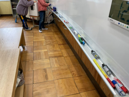 掃除時間の様子の写真です。ある班にホワイトボードの掃除をお願いしました。字を消してほしかったのですが、消しカスやマーカー等の整頓もしてくれました。次へ使いやすかったです。24日(水)には、終業式の後、大掃除をします。みんなが自ら動いて綺麗に掃除している姿が見に浮かびます。