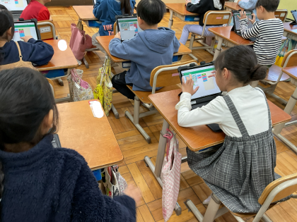 算数では、プログラミングの学習をしました。教科書のQRコードから読み取って、タブレットを使って学習しました。