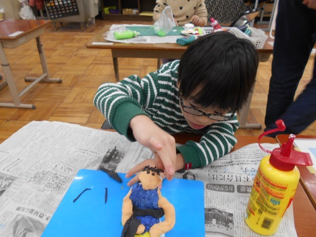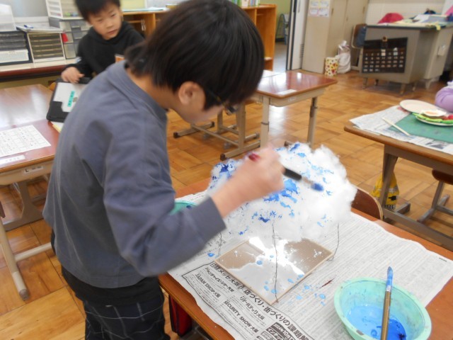 今日は最後の作品作り。綿に色を付けたり、ボンドを付けてお皿に盛りつけたり、気球に乗っている人を作ったり…。自分で考えて頑張って作りました。明日は、各々の作品の頑張った所、大変だった所を発表します。