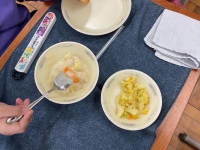 今週は給食週間。普段とは違う形のハッピーキャロットが入っているそうです。クラスで1つしか入っていないと知り、みんなでシチューの中を探しました。次のハッピーキャロットの日も楽しみにしています。