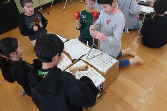 音楽科で「いろいろな音のひびきを楽しもう」の学習を進めています。