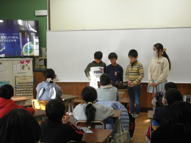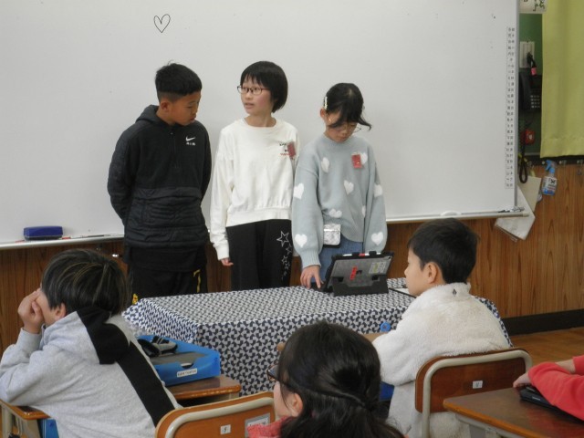 4年生の学習の成果を、他の学年に発表に行きました。緊張しながらも、一生懸命学習してきたことを堂々と発表できていました。学習してきたことを、もっとたくさんの人に伝えていくことが、これからの学習です。頑張ろう!4年生!!