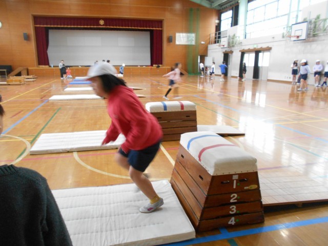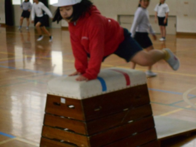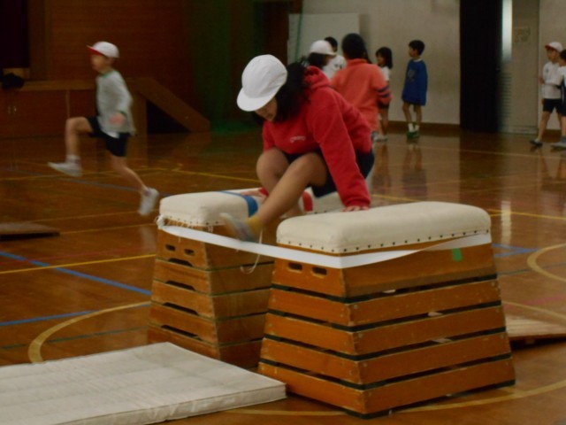体育の交流では跳び箱をしています。横4段の開脚跳びは余裕で跳べています。5段に何回もチャレンジしていましたが、あと少しの所です。縦の開脚跳びにもチャレンジしたり、抱え込み跳びなどにも一生懸命チャレンジしている姿は素晴らしいと思いました。あと一回の授業で、どこまで跳べるようになるか楽しみです。