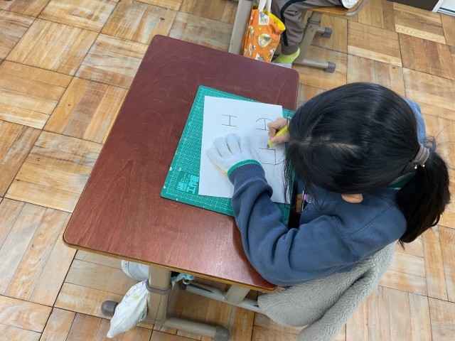 まっすぐ下に向かって切ることや、手をカッターを動かす方向に置かないことなど安全に気をつけて使いました。来週からは、作品作りに取り組んでいきます。