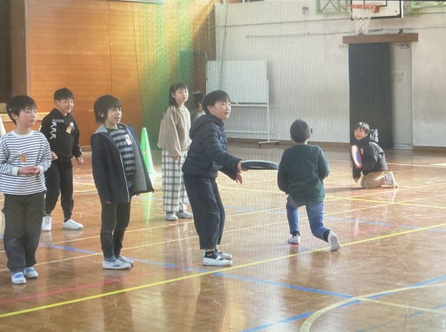 2年生全員でドッチビーをして遊びました。