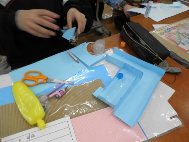 「めっちゃいいカーブできた!」「どうやってつくったん!?」教室に楽しそうな声が響きます。今、図工の学習で「コロコロガーレ」という学習をしています。ビー玉を転がすコースを作り、出来上がったらみんなで遊ぶ予定です。お皿の形やカーブ、ガタガタ道など、さまざまなコースのつくり方を知り、アイデアスケッチで考えを広げました。今回は初回なので、コースの一部を作ってみました。どんなコースができるか、今から楽しみです。