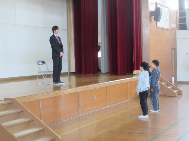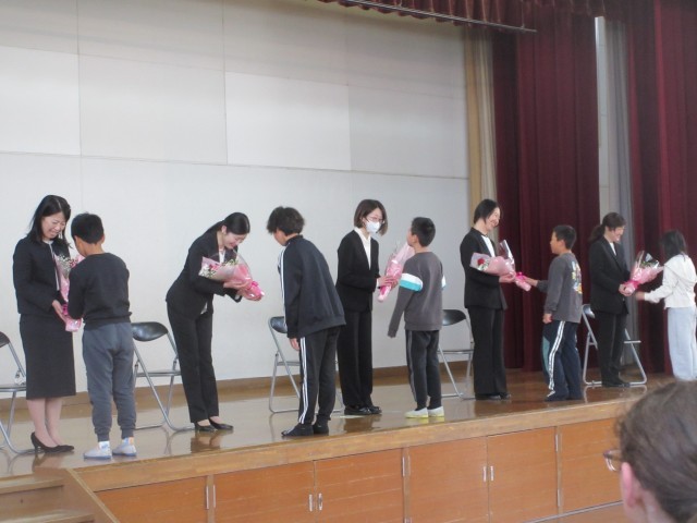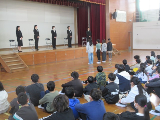 教職員の離任式が行われました。お世話になった教職員の皆さんに感謝の気持ちを伝えることができました。教職員の皆さんとお別れすることは寂しいですが、新学期から新しい学年で頑張ってほしいと思っています。