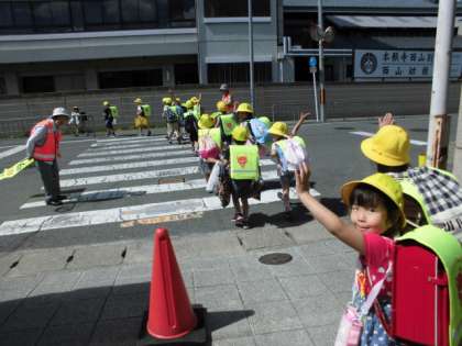 見守り隊のみなさんに「さようなら。」とあいさつをして帰ります。みんなを見守ってくださって,いつもありがとうございます。