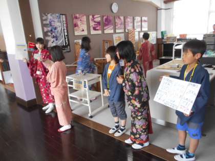 京都の伝統文化,西陣織体験をしました。お金を使って買えるものには,物とサービスがあることを実感しました。