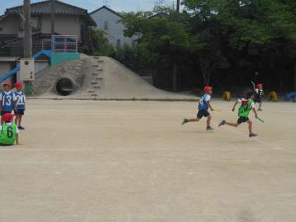 先週,雨が降って延期になっていたリレーあそびの学習をしました。一週間,間があいていましたが,準備も素早くすることができて,たくさん試合をすることができました。