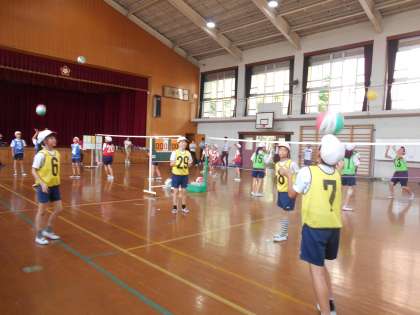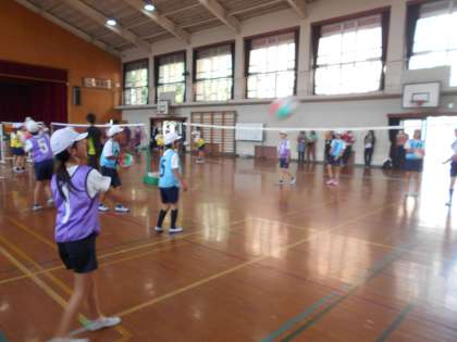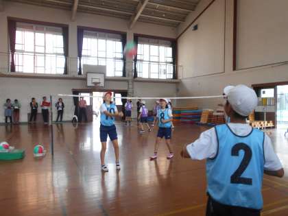 たくさんの先生が観に来てくださっている中でのソフトバレーボールでした。