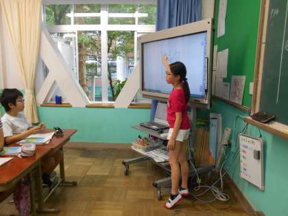 今日は,点対称な図形について考えました。点対称な図形とはどのような形のことをいうのでしょうか。実際に図形を動かしながら,考えています。