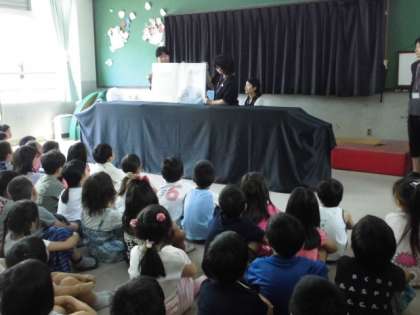 今日の中間休みは,みんなで読み聞かせの会に行きました。楽しいお話にみんな聞き入っていました。
