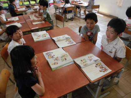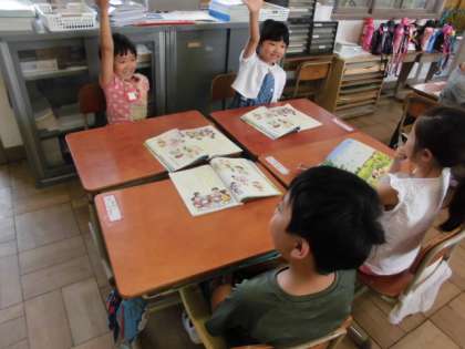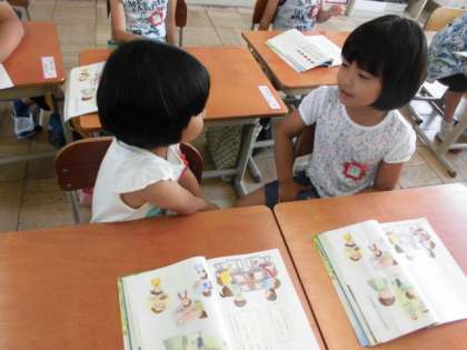 「おもいだして はなそう」の学習です。お休みの日に公園へ行って遊んだことなど,分かりやすく話すことができました。聞いた人は,「てつぼうで,どんな技をしたのですか?」「何回したのですか?」など,上手に質問することができました。