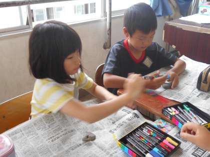 みさきの家ではたくさんの思い出ができました。そんな思い出を残しておけるよう,磯観察で拾ったお気に入りの石にストーンペイントをしました。石を見るたびに楽しい思い出がよみがえってきますね。
