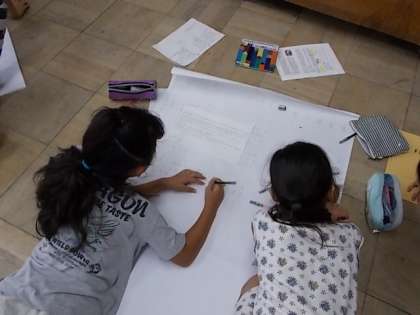 大きな模造紙に分かりやすくまとめています。