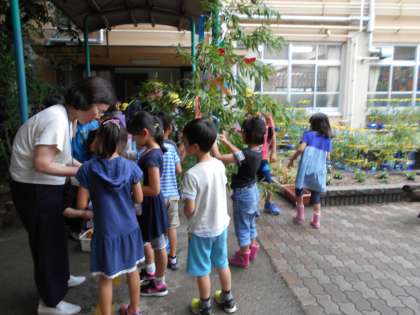 この前から作っていた「七夕かざり」を笹につけました。短冊に書いたお願いごとがかないますように。