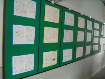 今月の職員室横の掲示板は算数ノートです。