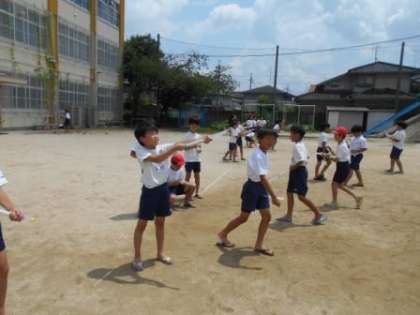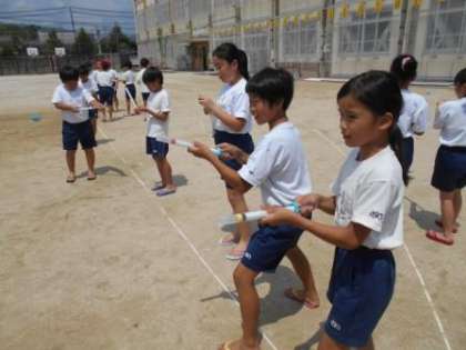 理科「とじこめた空気や水」で学習したことを生かして,空気鉄砲と水鉄砲あそびをしました。どうすれば遠くまで飛ばせるか考えながら楽しんでいました。