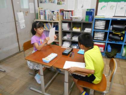 今日は,「お話クイズ」をしました。いろいろな問題を解いて,楽しそうでした。