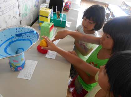 学活の時間に友だちが紹介してくれた素敵な夏休みの作品が並んでいます。作った友だちに説明してもらったり,じっくり見たり,休み時間に楽しんで鑑賞していました。