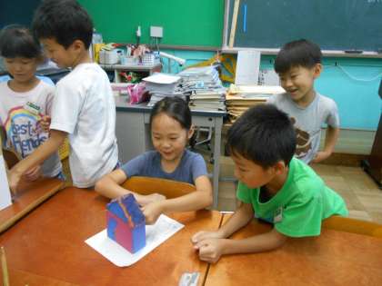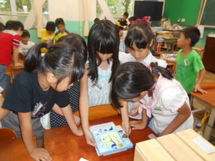 夏休みの宿題も,とてもがんばっていました。お友達といっしょに,作品を鑑賞しました。