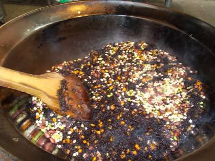 ひじきのソテーは,色とりどりのカラフルな豆を蒸しあげ