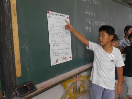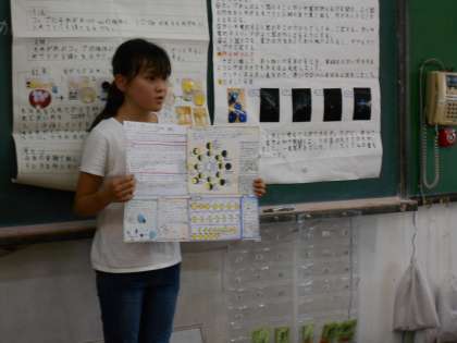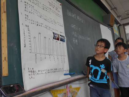 夏休みに取り組んだ自由研究の発表会をしました。自分で決めたテーマにそって観察や実験,本で調べてわかったことなどを工夫してまとめることができました。