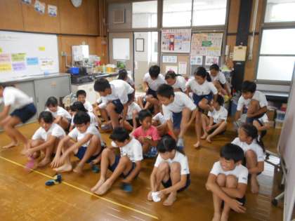 今日は身体計測・保健指導がありました。早寝・早起きの大切さや,レム睡眠・ノンレム睡眠についても学習しました。また,立ったままで靴下を脱ぐゲームをしました。体のバランスについても関心をもつことができました。