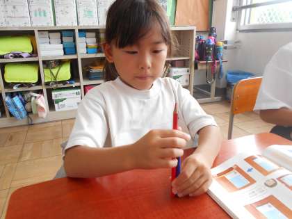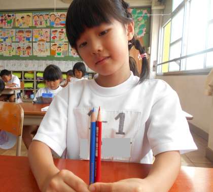 今日は,「ながさくらべ」をしました。どちらが長いかな?えんぴつの長さを比べる時は,はしをそろえて比べました。