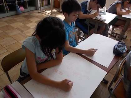お話を聞いて描いた絵の下絵が完成し,