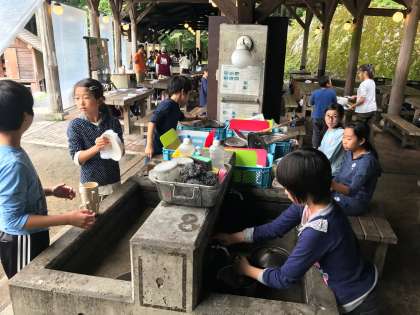 野外炊事が始まりました。