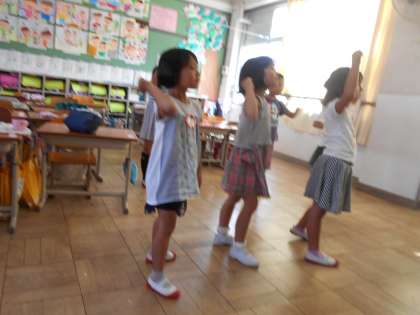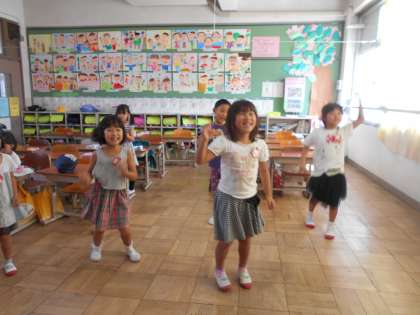 全校ダンスの動画を見ながら,ダンスの練習を楽しみました。