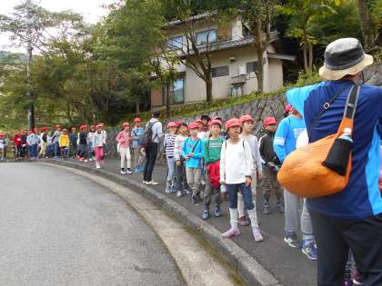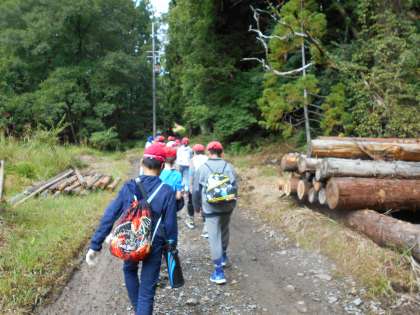 よく冷えたペットボトルのお茶をもらって今日のメイン,山登りに出発です。