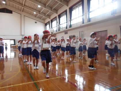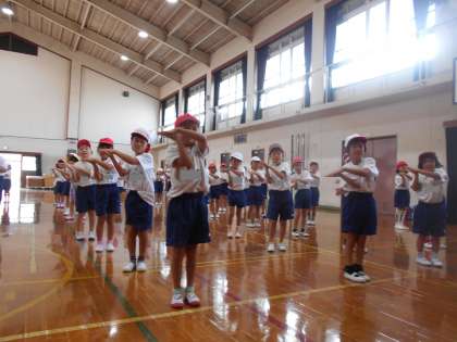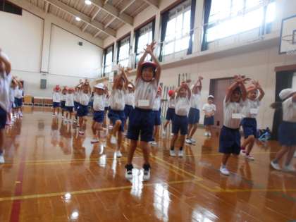 今日は50メートル走で走る順を確かめた後,ダンスの練習をしました。リズムにのって弾むような感じで踊っていました。
