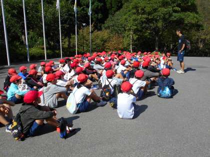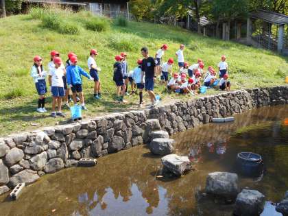まず,広場で話を聞いてから,魚つかみの場所へ移動です。